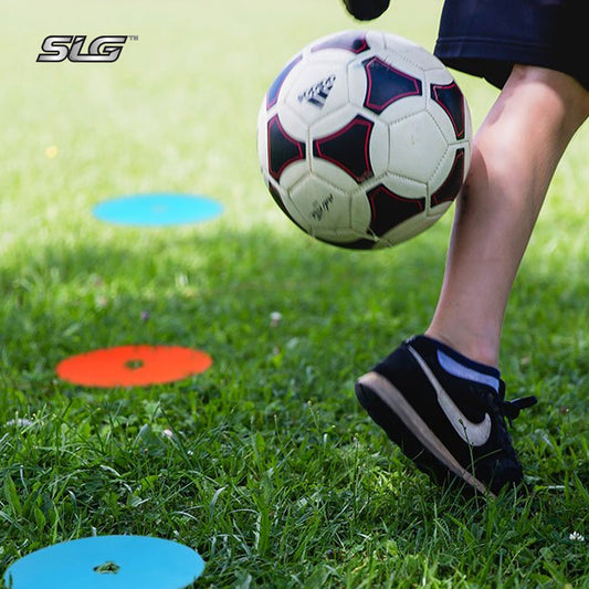 SLG Non-Slip 4" Rubber Agility Markers with Stand & Cary Bag Set of 50 | Flat Field Cones & Floor Dots for Soccer, Basketball, Football, Sports Training